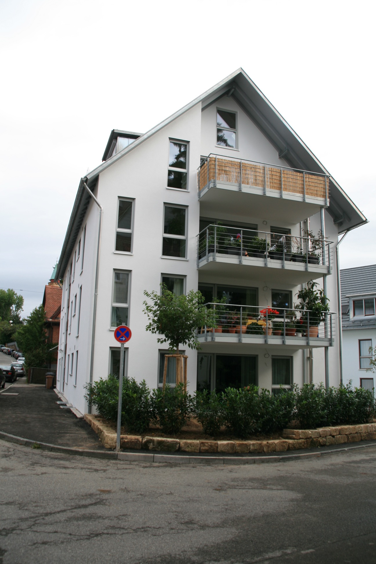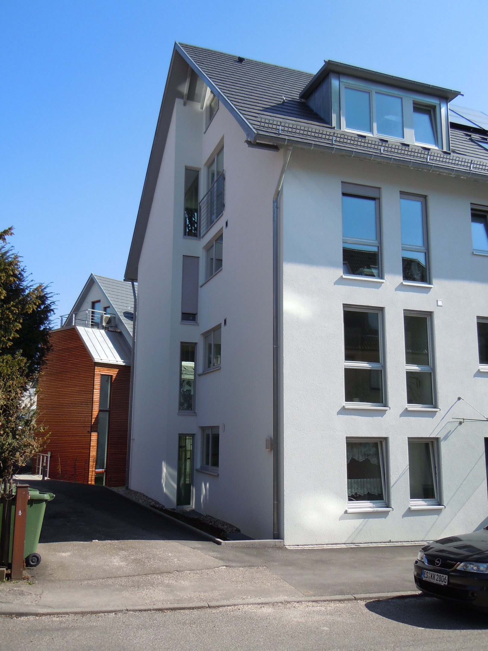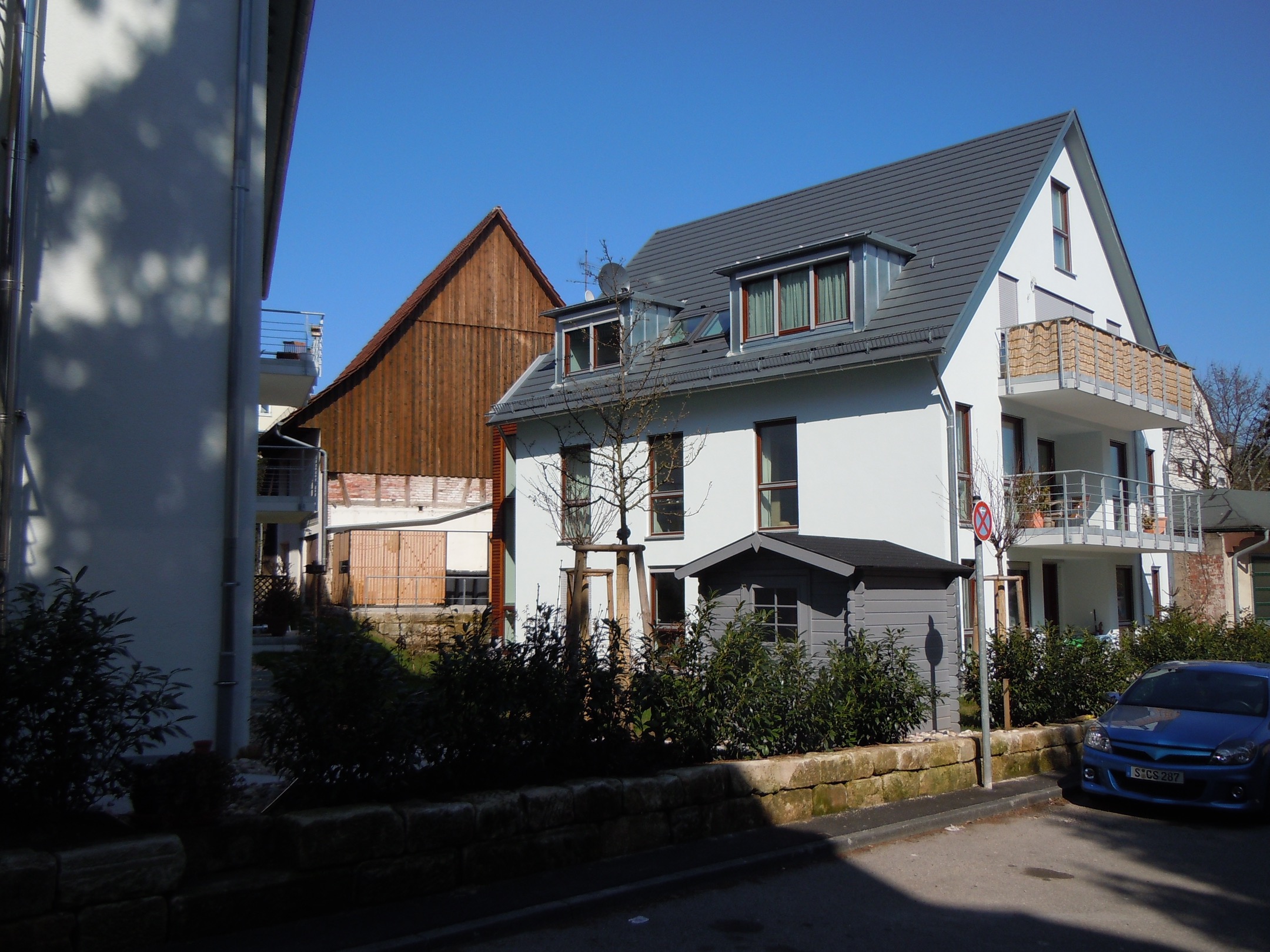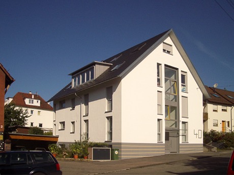Wohngebäude KP38 Stuttgart -Degerloch. Mitten in Degerloch entstand auf einem schwierigen Grundstück ein anspruchsvolles Gebäudeensemble aus zwei unterschiedlich großen Wohngebäuden mit elf Wohnungen. Umgeben von dichter Wohnbebauung, welche mit Handwerksbetrieben durchmischt ist, sind die beiden Gebäude über ein Tiefgaragengeschoss miteinander verbunden. Nach intensiver Planungsphase mit dem Baurechtsamt Stuttgart konnte ein städtebaulich stimmiges Konzept umgesetzt werden. Eine bestehende Scheune wurde zur Hälfte rückgebaut und findet sich als Reminiszenz in den Außenansichten der Treppenhäuser wieder. Die Wohnanlage mit Kinderspielplatz, Innenhofbegrünung und Fahrstuhl für barrierefreie Zugänge im Haus A, wurde unter Berücksichtigung der ökologischen Nachhaltigkeit, Energieeffizienz durch die Firma WEST.desginbau GmbH konzipiert. Individuelle Innenraumkonzepte schaffen eine Wohnqualität, die sich wohltuend von den üblichen Branchenstandards abhebt. Die beiden Maisonettwohnungen in den Dachgeschossen schweben über den Dächern Degerlochs. Planungsphase Anfang bis Ende 2008 Fertigstellung: 2009 Außenanlagen: 2010