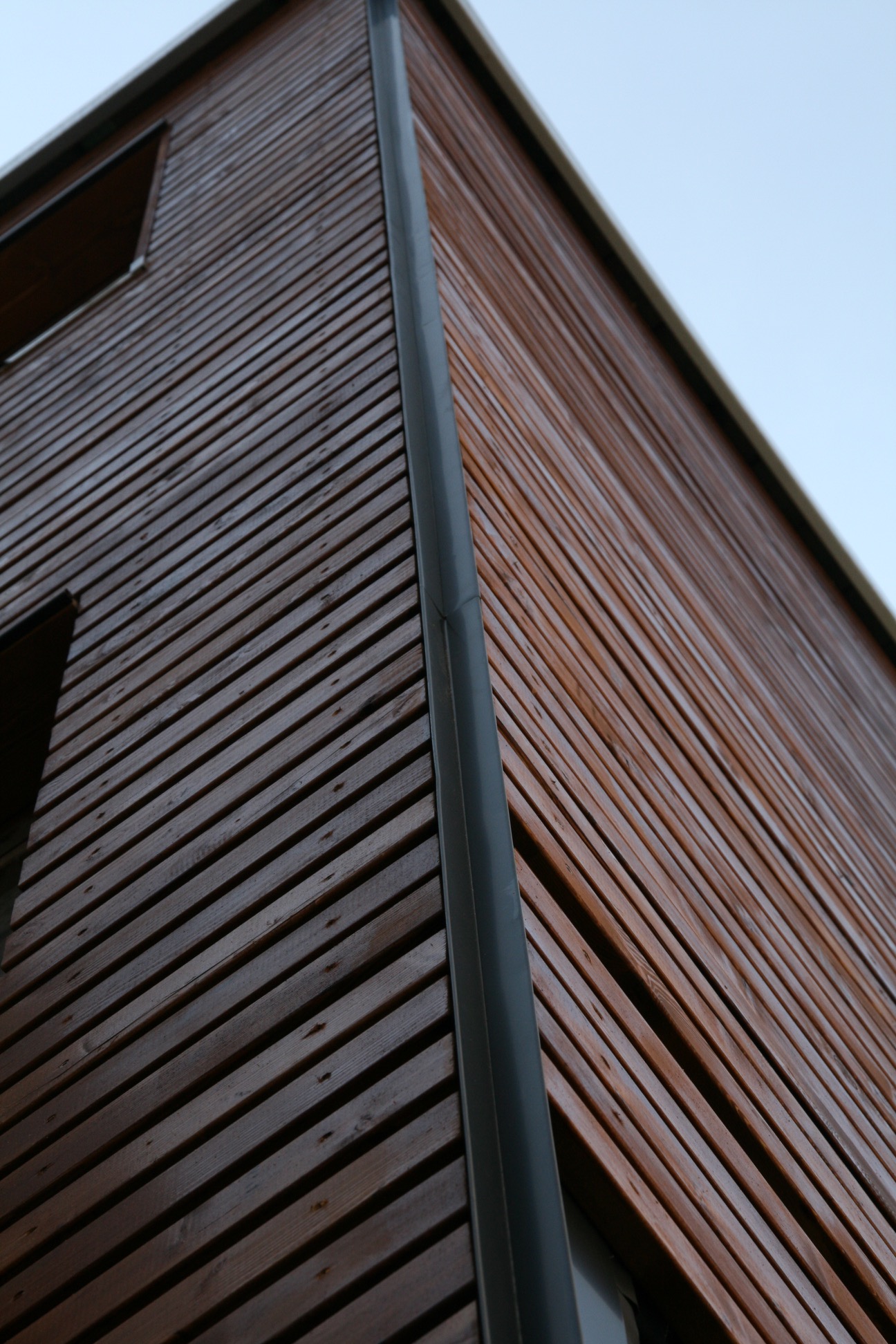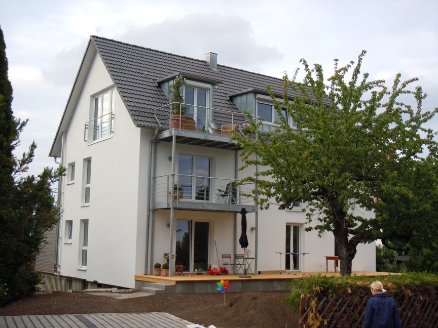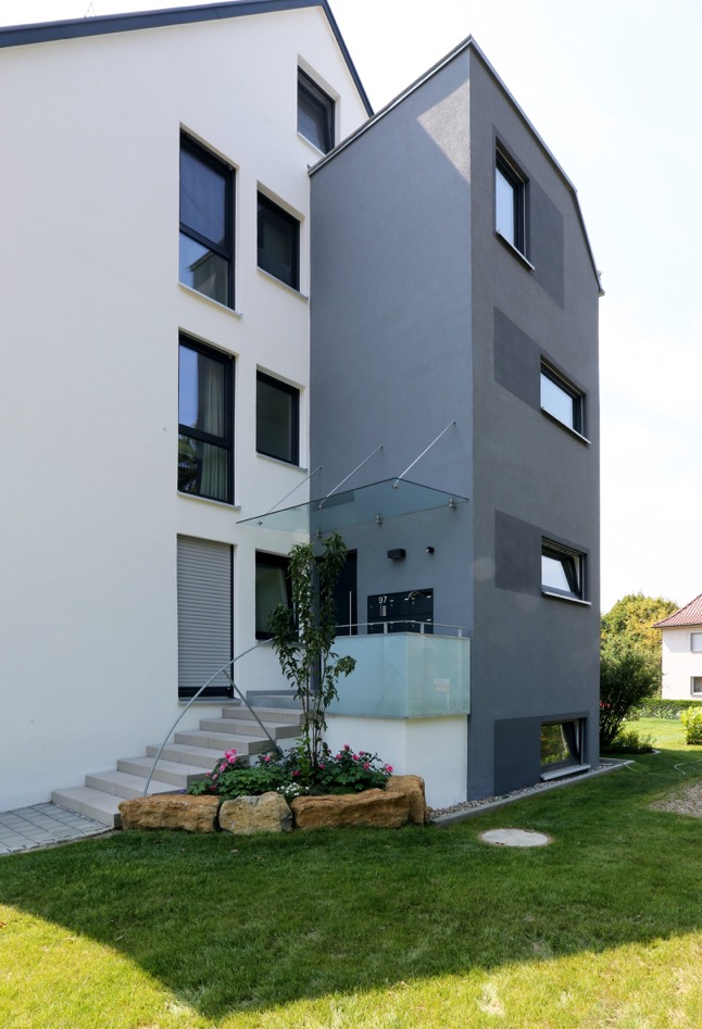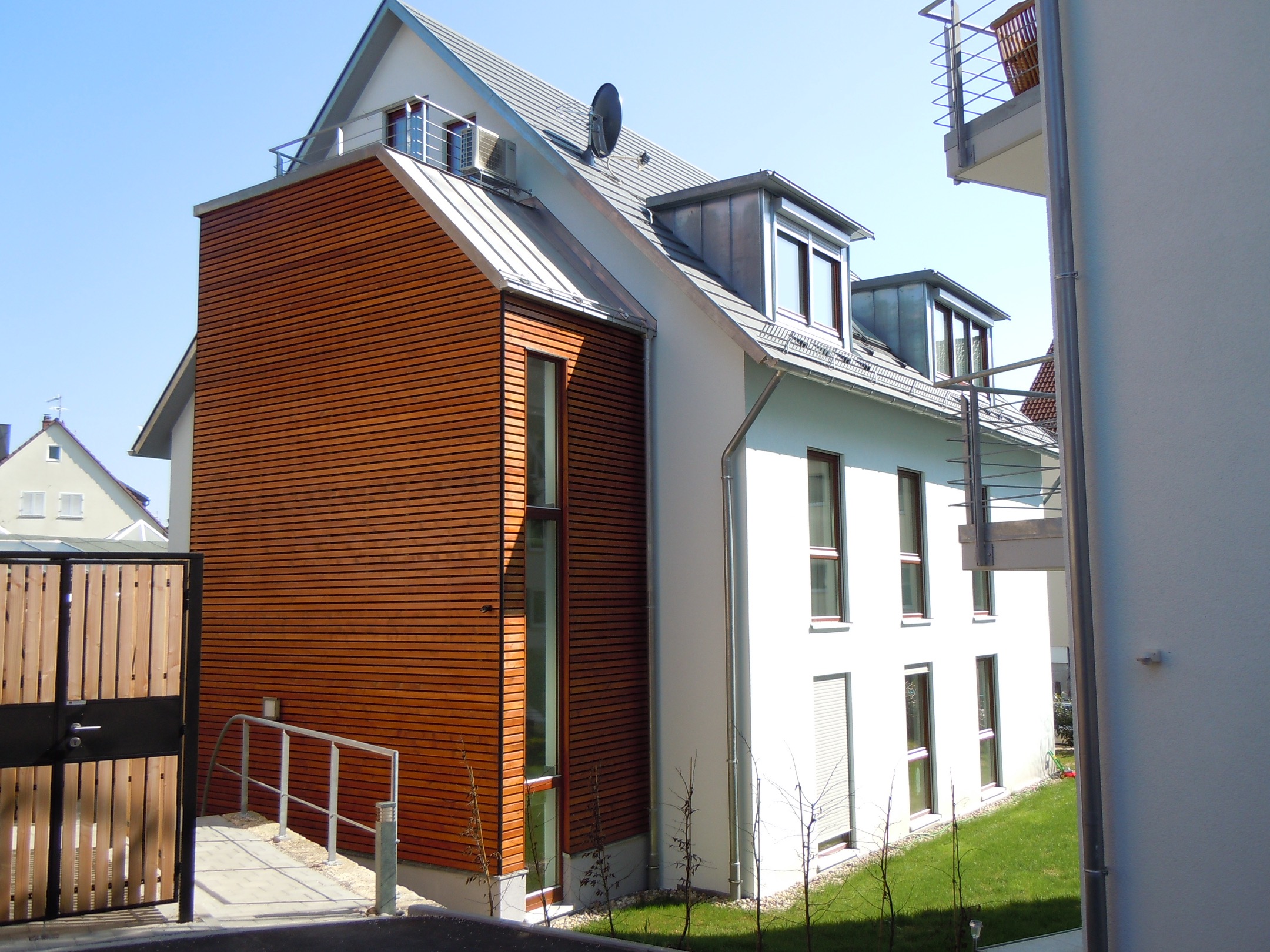 Wohngebäude KP38 Stuttgart -Degerloch. Mitten in Degerloch entstand auf einem schwierigen Grundstück ein anspruchsvolles Gebäudeensemble aus zwei unterschiedlich großen Wohngebäuden mit elf Wohnungen. Umgeben von dichter Wohnbebauung, welche mit Handwerksbetrieben durchmischt ist, sind die beiden Gebäude über ein Tiefgaragengeschoss miteinander verbunden. Nach intensiver Planungsphase mit dem Baurechtsamt Stuttgart konnte ein städtebaulich stimmiges Konzept umgesetzt werden. Eine bestehende Scheune wurde zur Hälfte rückgebaut und findet sich als Reminiszenz in den Außenansichten der Treppenhäuser wieder. Die Wohnanlage mit Kinderspielplatz, Innenhofbegrünung und Fahrstuhl für barrierefreie Zugänge im Haus A, wurde unter Berücksichtigung der ökologischen Nachhaltigkeit, Energieeffizienz durch die Firma WEST.desginbau GmbH konzipiert. Individuelle Innenraumkonzepte schaffen eine Wohnqualität, die sich wohltuend von den üblichen Branchenstandards abhebt. Die beiden Maisonettwohnungen in den Dachgeschossen schweben über den Dächern Degerlochs. Planungsphase Anfang bis Ende 2008 Fertigstellung: 2009 Außenanlagen: 2010