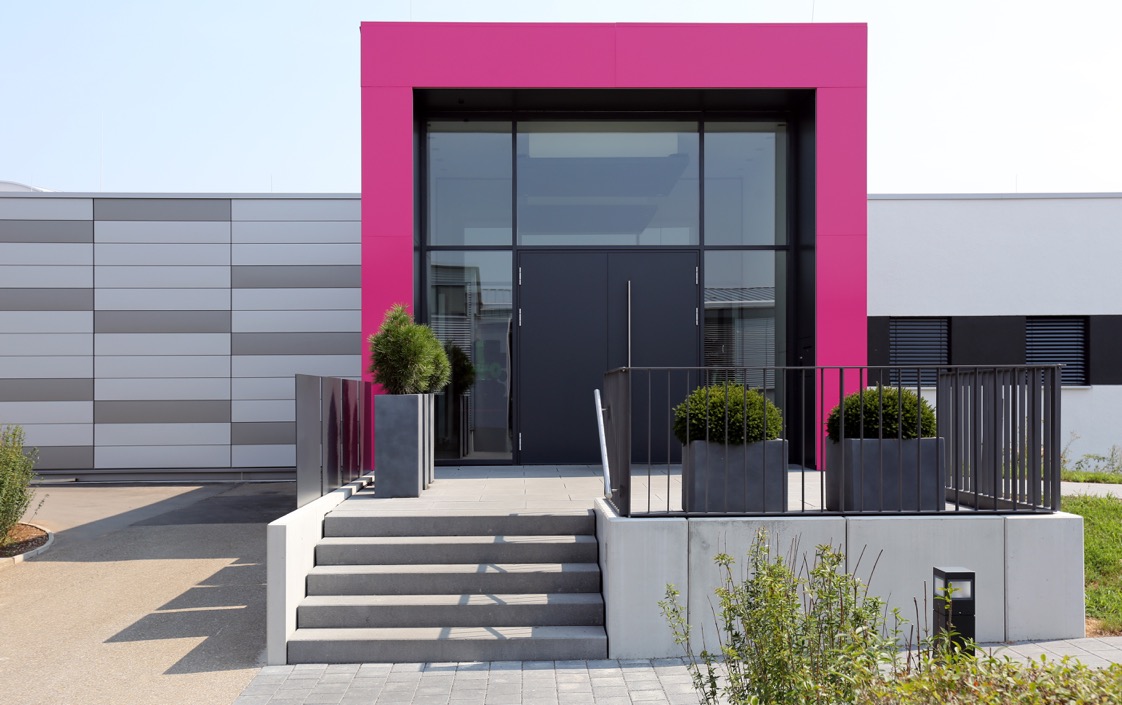 Sanierung Gewerbe Tübingen. Im Tübinger Ortsteil Weilheim wurde ein, um 1970 aus Betonfertigelementen gefertigter, bestehender Industriebau umfassend saniert und umgebaut. Das Gebäude besteht aus einer umgebauten Produktionshalle mit Lichtsheds, einer neuen LKW-Ladestation, einem neuen Eingangsbereich und einem unterkellerten Bürogebäude, das ebenfalls in enger und äußerst produktiver Zusammenarbeit mit dem Bauherren, kernsaniert und dann nach neuesten Büroplanungsmaßstäben ausgestattet wurde. Das Produktionsgebäude liegt am Ortseingang. Die gut einsehbare Ostfassade besteht aus Alukassetten, die in CI (Corporate Identity) Farben der Pumpenproduzierenden Firma Schmalenberger in hellgrün und magenta gestaltet sind. Der Umbau wurde von den bestehenden Mitarbeitern sehr gut angenommen und wird auch für zukünftige neue Mitarbeiter in weitestem Sinne „anziehend“ wirken.
