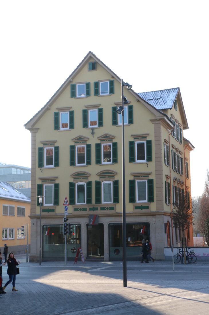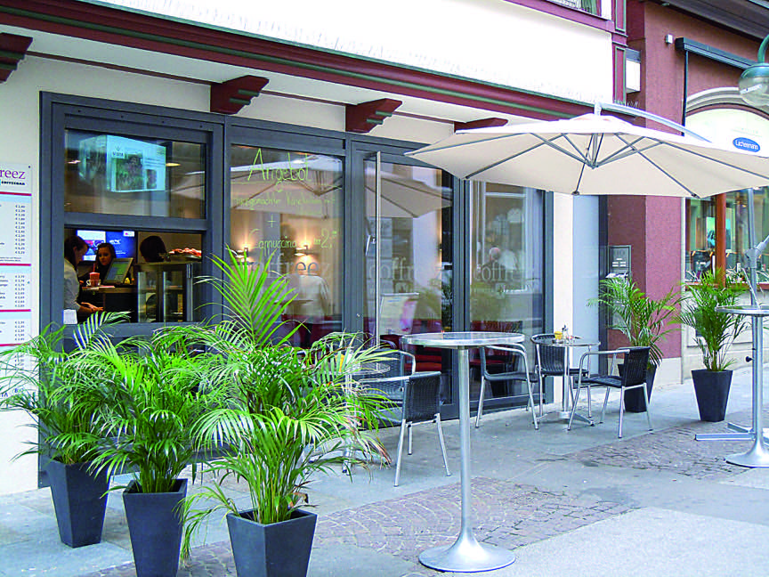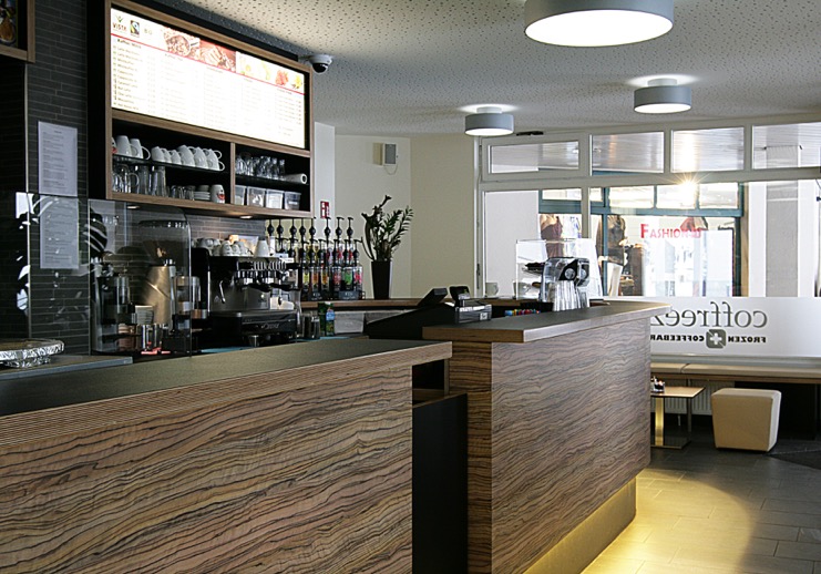 Brezelstüble Tübingen. 2009 entstand in der Tübinger Altstadt ein kleiner aber liebenswerter Coffeeshop des großen Cafe Lieb. Der enge und sehr schlauchförmige Laden sollte trotz der eingeschränkten Platzmöglichkeiten nicht nur Gebäck, sondern auch Getränke und kleine Snacks anbieten können. Jeder Platz wurde optimal ausgenutzt. Wichtig war auch die Beleuchtung, welche dem Laden mit nur einem Schaufenster ein helles und freundliches Ambiente verlieh, und den Blick auf die Auslegeware lenken sollte.