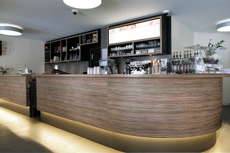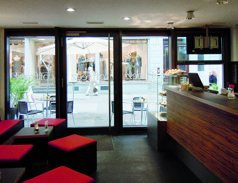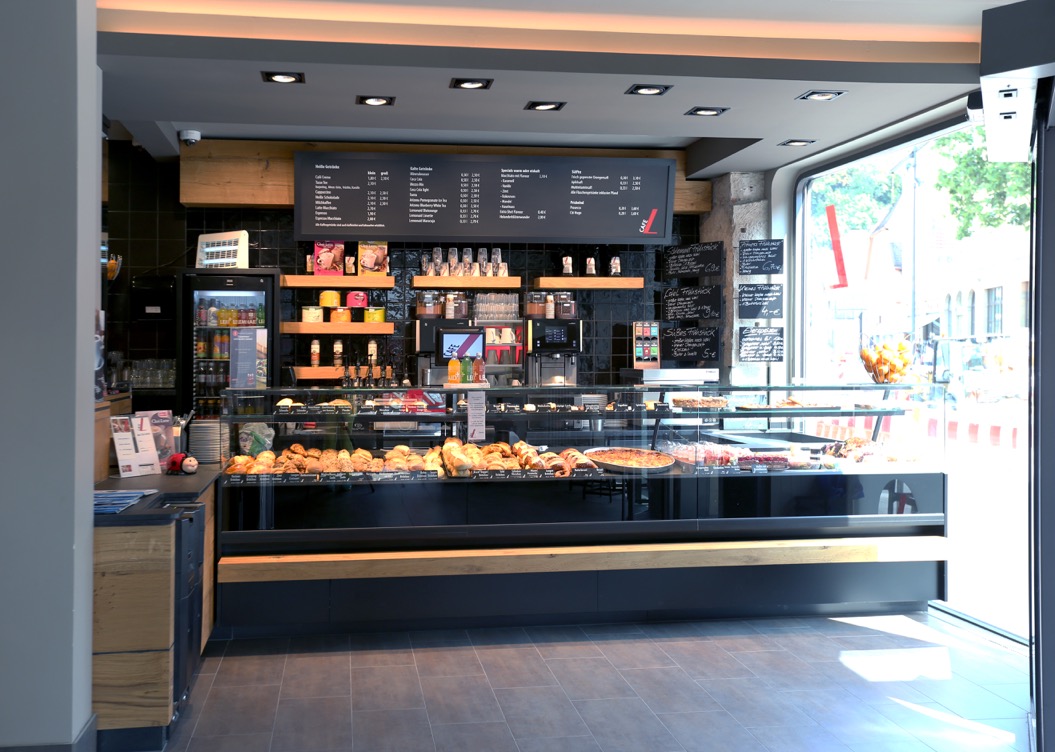 Brezelstüble Tübingen. 2009 entstand in der Tübinger Altstadt ein kleiner aber liebenswerter Coffeeshop des großen Cafe Lieb. Der enge und sehr schlauchförmige Laden sollte trotz der eingeschränkten Platzmöglichkeiten nicht nur Gebäck, sondern auch Getränke und kleine Snacks anbieten können. Jeder Platz wurde optimal ausgenutzt. Wichtig war auch die Beleuchtung, welche dem Laden mit nur einem Schaufenster ein helles und freundliches Ambiente verlieh, und den Blick auf die Auslegeware lenken sollte.