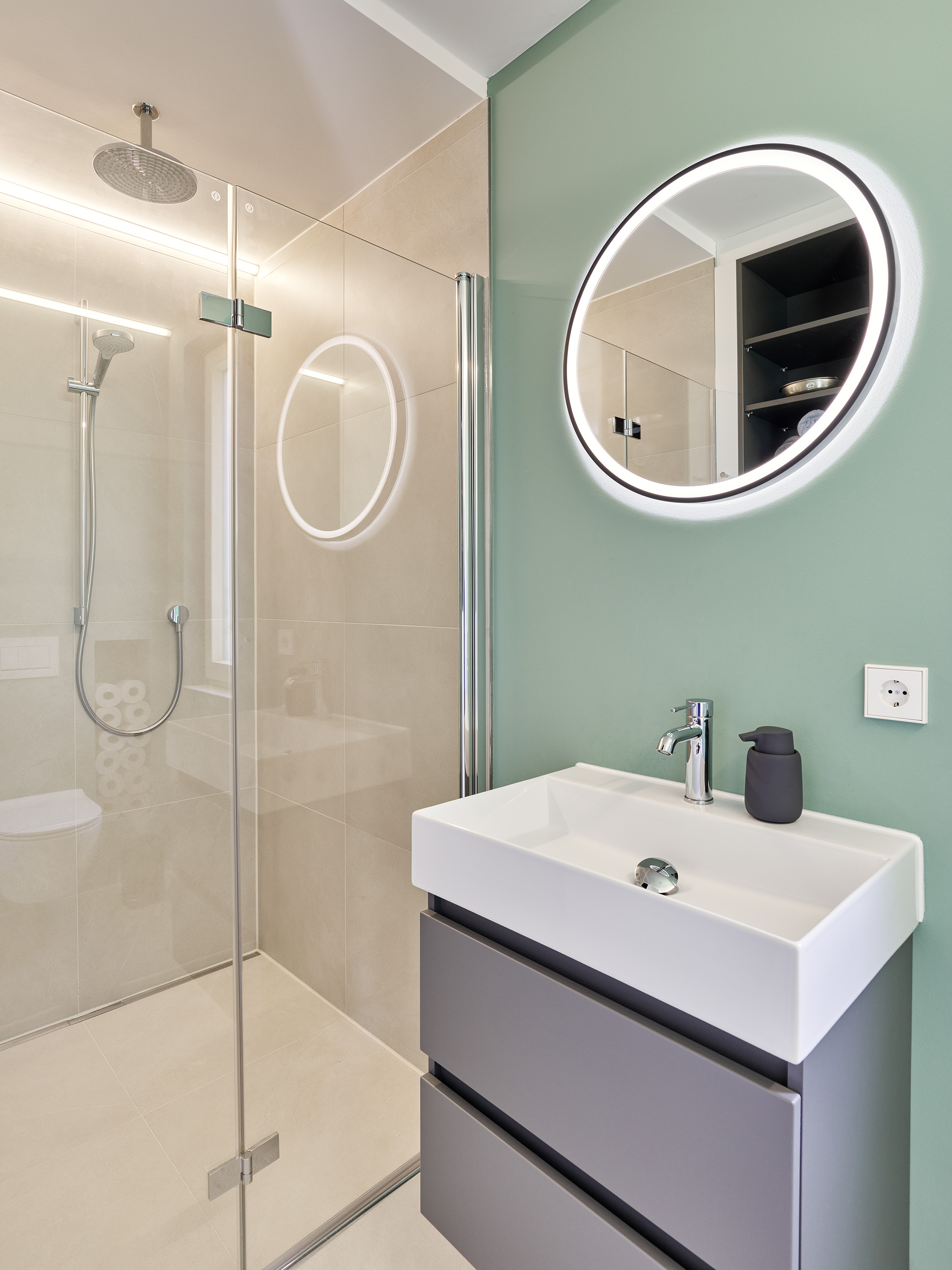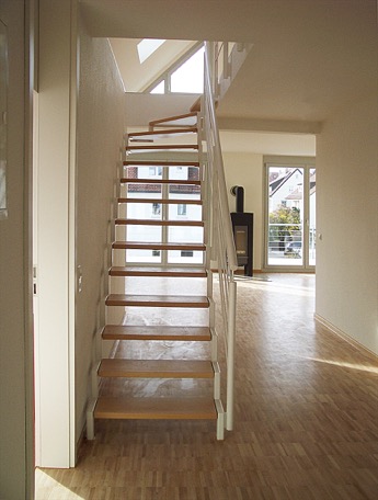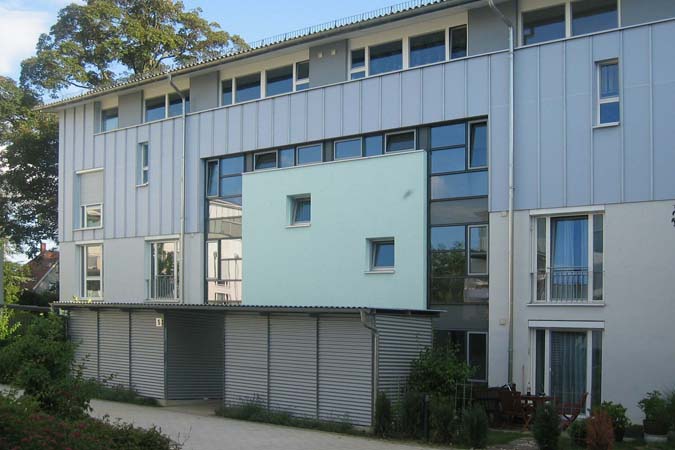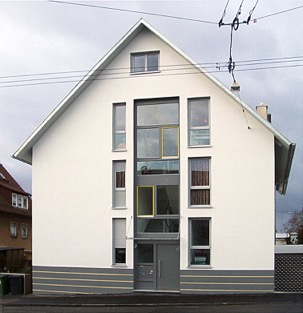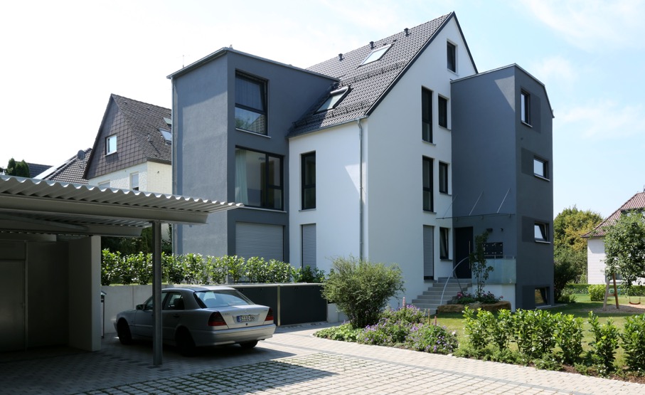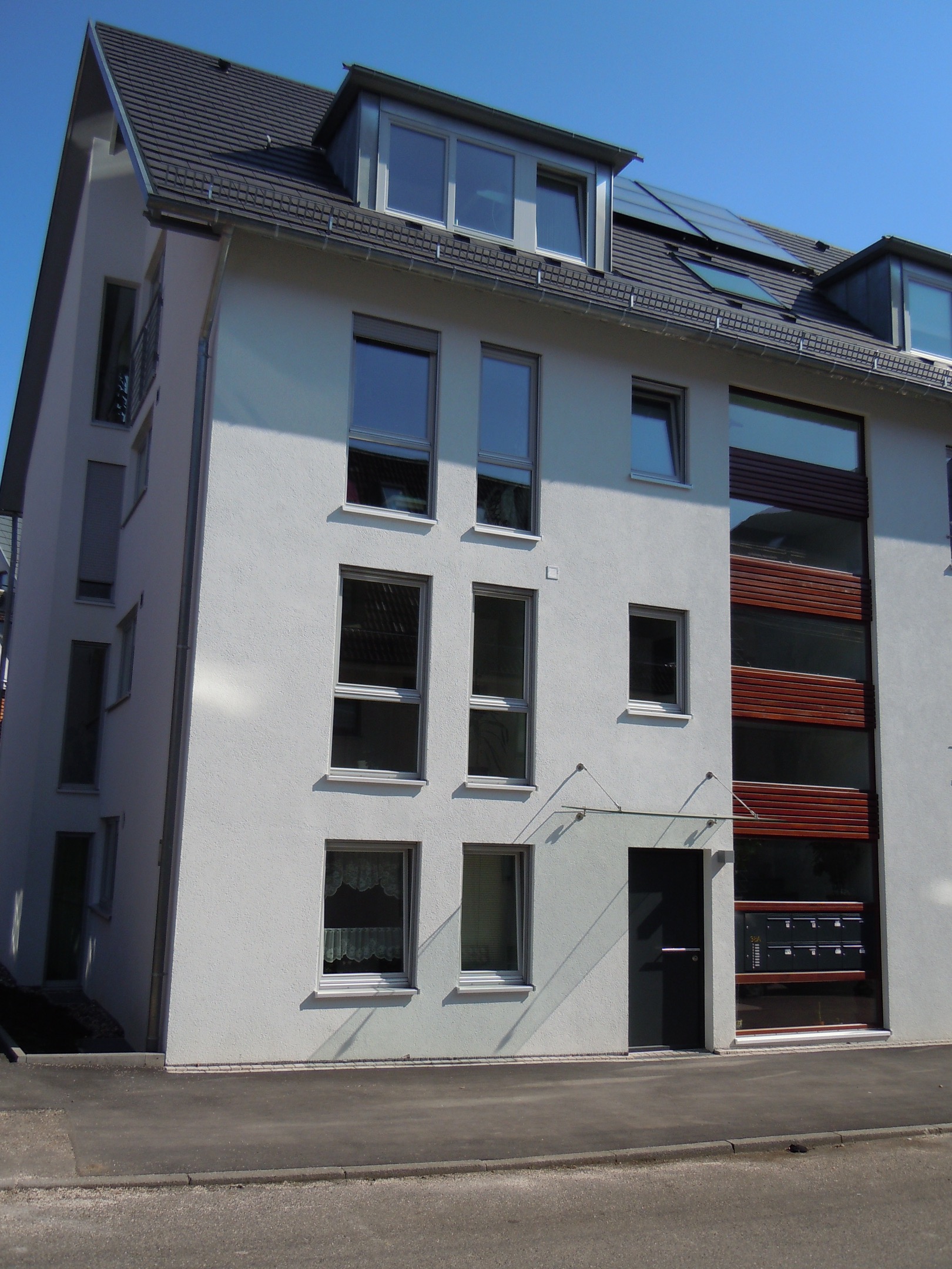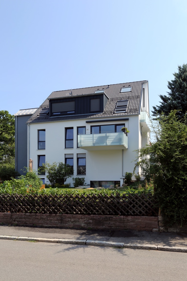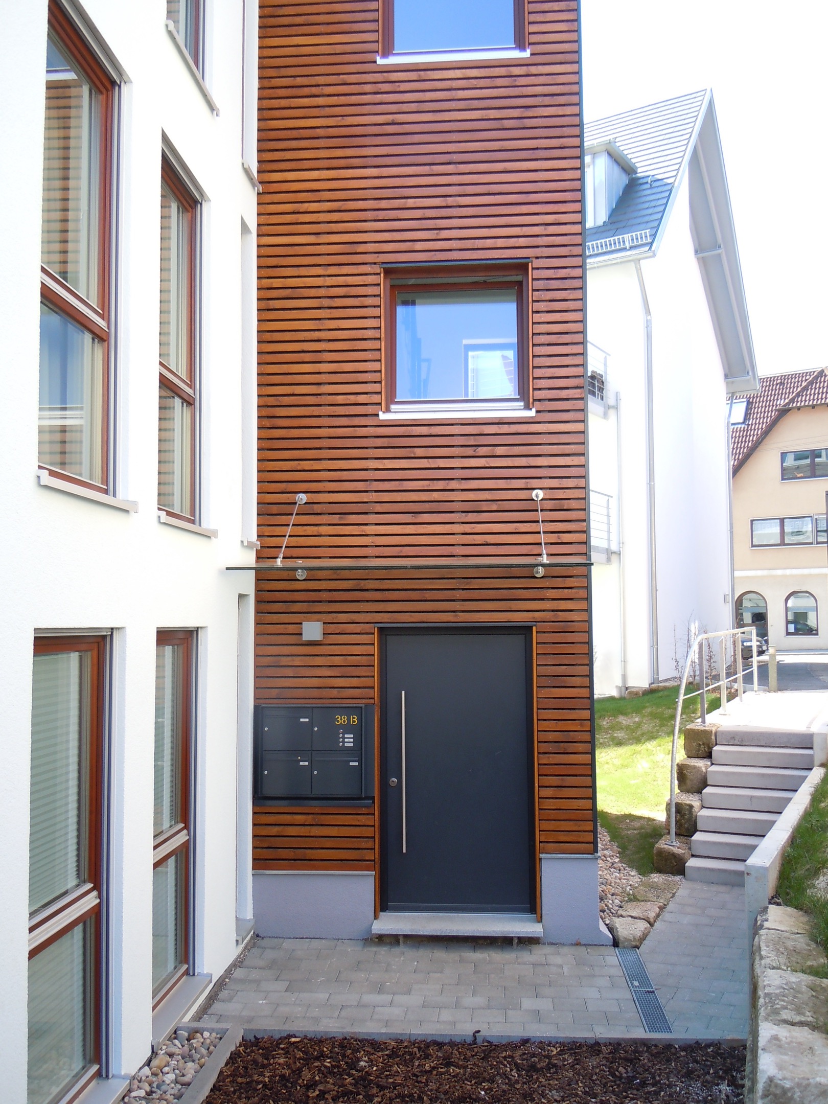 Wohngebäude KP38 Stuttgart -Degerloch. Mitten in Degerloch entstand auf einem schwierigen Grundstück ein anspruchsvolles Gebäudeensemble aus zwei unterschiedlich großen Wohngebäuden mit elf Wohnungen. Umgeben von dichter Wohnbebauung, welche mit Handwerksbetrieben durchmischt ist, sind die beiden Gebäude über ein Tiefgaragengeschoss miteinander verbunden. Nach intensiver Planungsphase mit dem Baurechtsamt Stuttgart konnte ein städtebaulich stimmiges Konzept umgesetzt werden. Eine bestehende Scheune wurde zur Hälfte rückgebaut und findet sich als Reminiszenz in den Außenansichten der Treppenhäuser wieder. Die Wohnanlage mit Kinderspielplatz, Innenhofbegrünung und Fahrstuhl für barrierefreie Zugänge im Haus A, wurde unter Berücksichtigung der ökologischen Nachhaltigkeit, Energieeffizienz durch die Firma WEST.desginbau GmbH konzipiert. Individuelle Innenraumkonzepte schaffen eine Wohnqualität, die sich wohltuend von den üblichen Branchenstandards abhebt. Die beiden Maisonettwohnungen in den Dachgeschossen schweben über den Dächern Degerlochs. Planungsphase Anfang bis Ende 2008 Fertigstellung: 2009 Außenanlagen: 2010