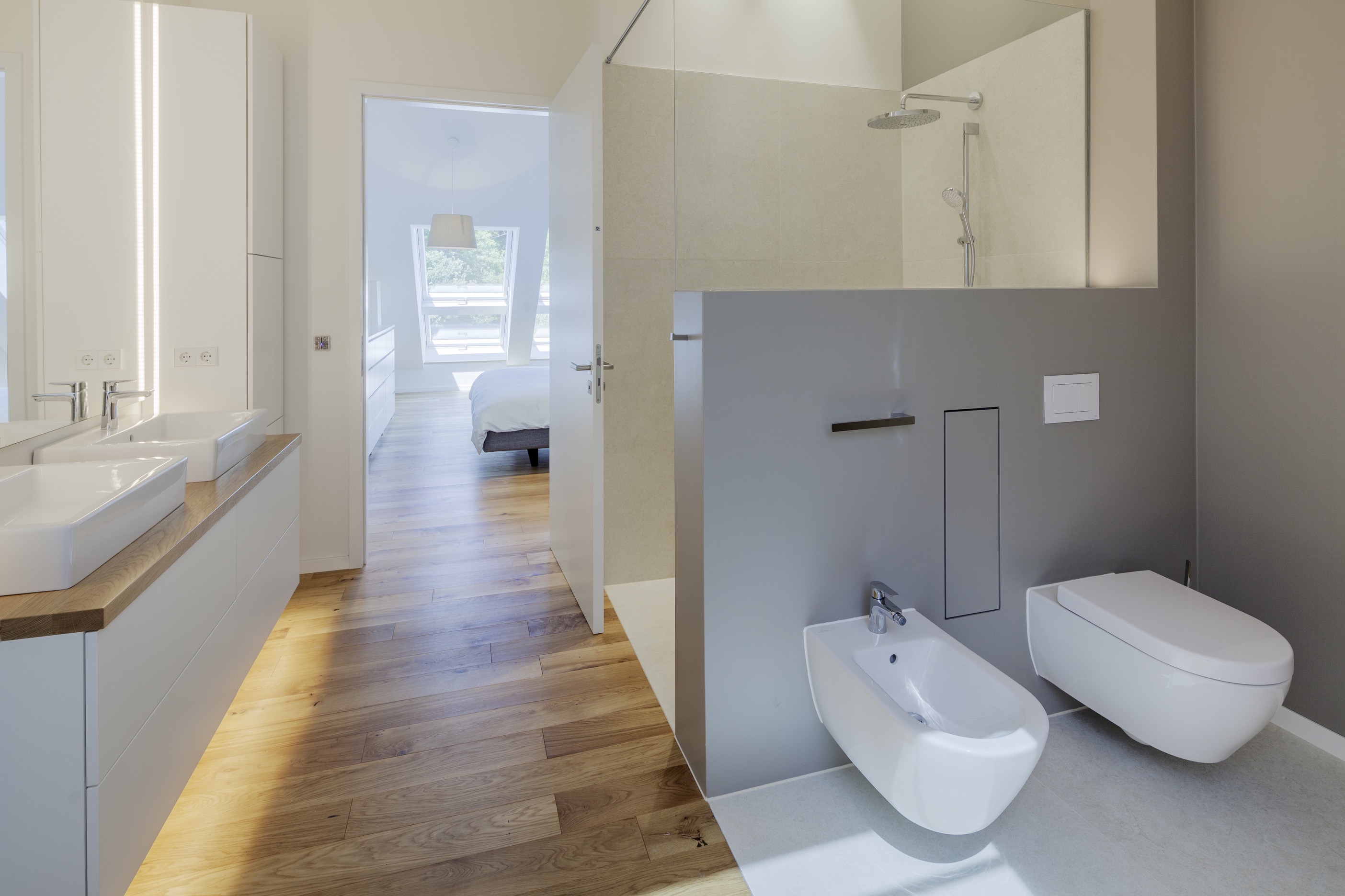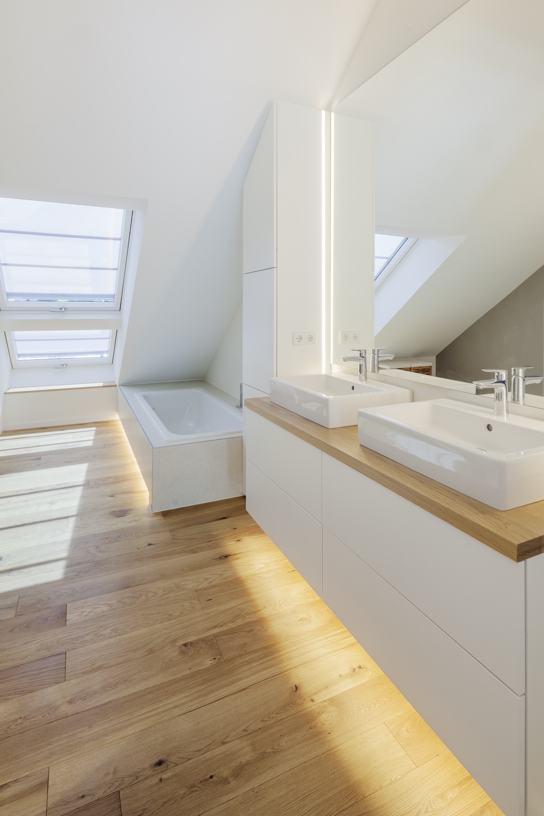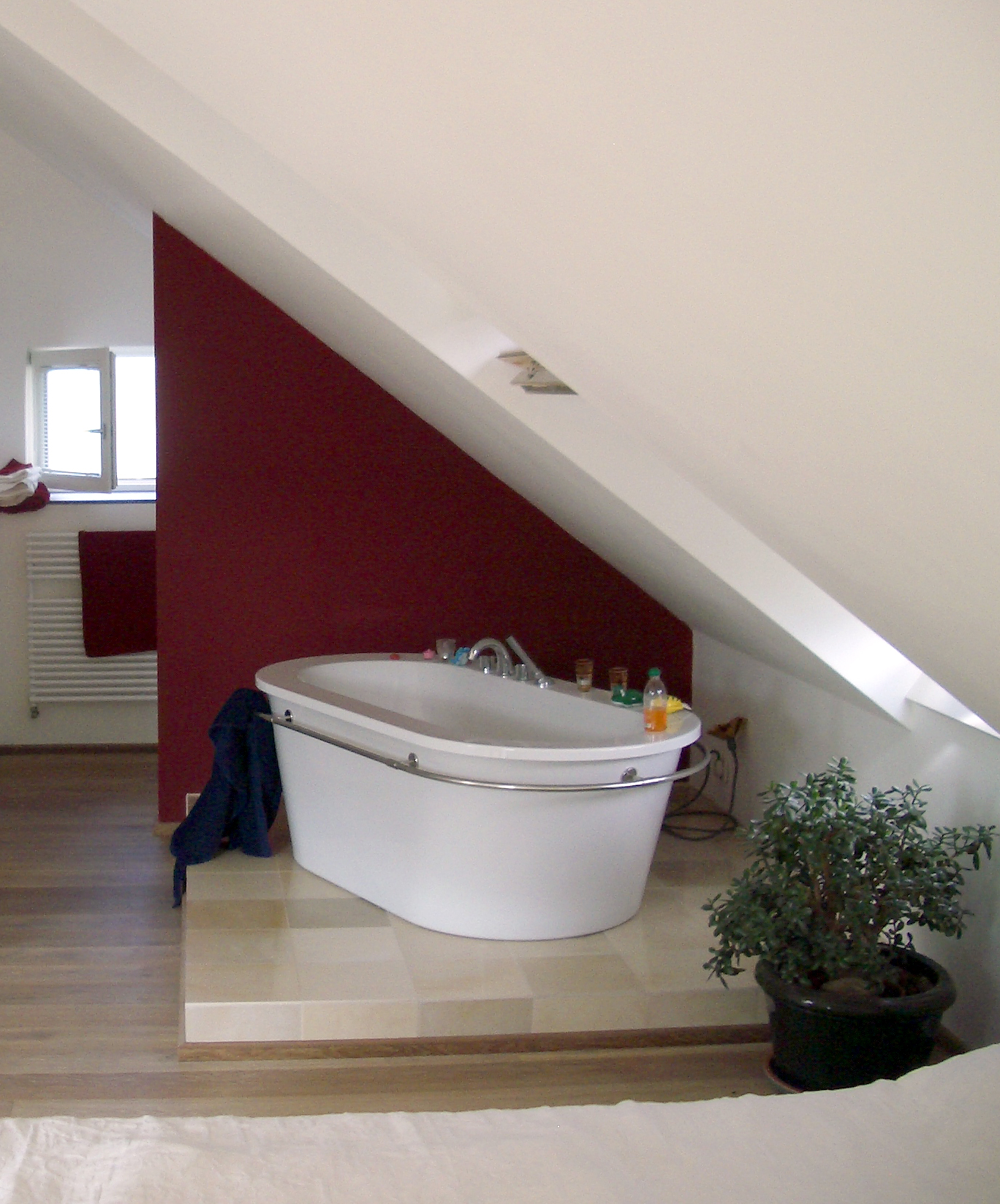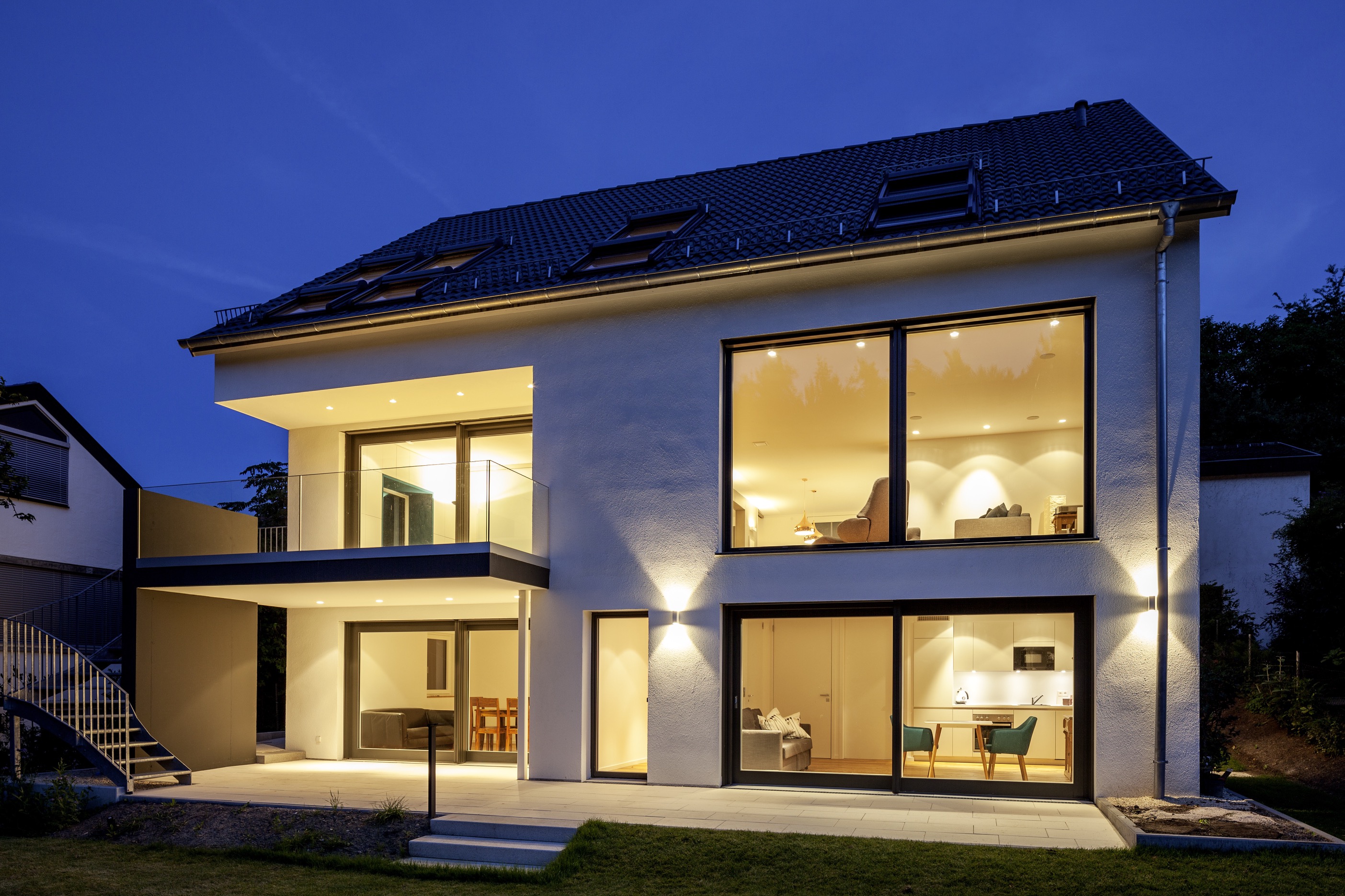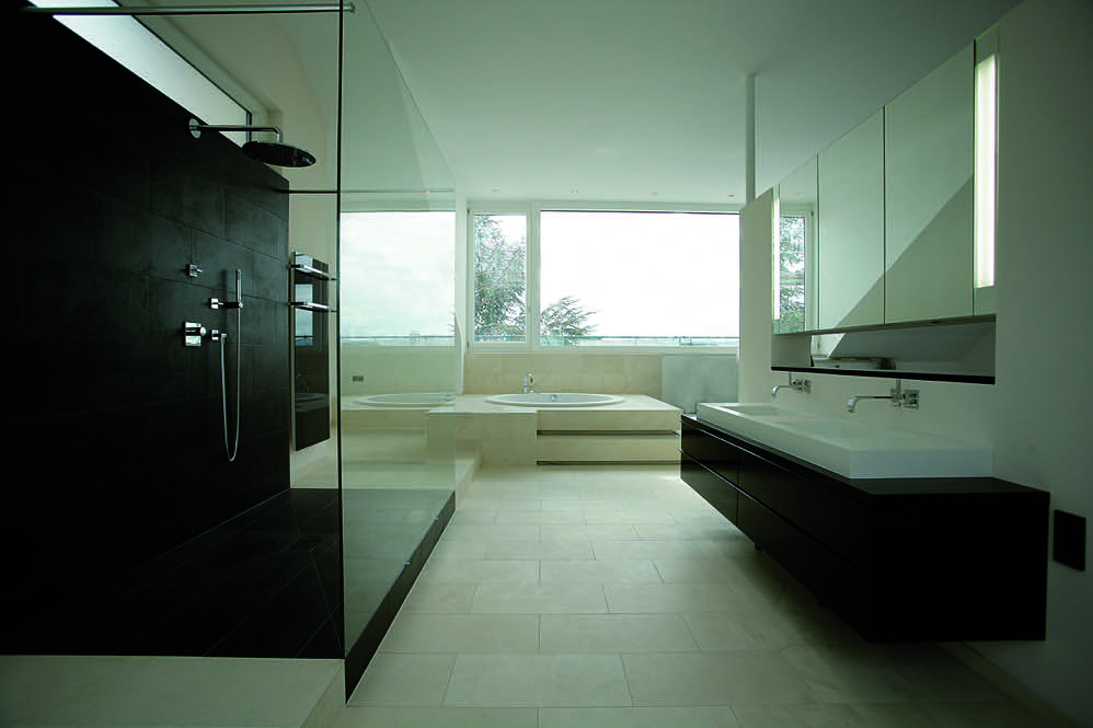 Villa Beutelsbach. Umbau, Sanierung und Innenausbau einer Villa, Beutelsbach. In erfolgreicher Zusammenarbeit mit der Stuttgarter Firma WEST.designbau GmbH wurde eine ehemalige Fabrikantenvilla unterhalb der Weinberge in Beutelsbach grundsaniert und umgebaut. Die Wirkung des modernen, in Teilen fast luxeriösen, Innenausbaus wird durch die großzügig geplanten Räume gesteigert, die fließend ineinander übergehen. Im Dachgeschoss befindet sich ein gemeinsamer Schlaf- und SPA-Bereich und ein begehbares Ankleide- und Schrankzimmer. Im Zentralgeschoss sind neben einem großzügigen Wohnküchenbereich mit vorgelagerter Aussichtsterrasse das Arbeits- und Gästezimmer zu finden. Das am ehemaligen Weinberghang erbaute Gebäude, überzeugt außerdem im Gartengeschoss mit einem Schwimmbad mit Saunabereich, einem Loungebereich und einem offenen Kamin, sowie dem Bewirtungsraum „Rittersaal“. Technikräume und Garage sowie Einliegerwohnung, sind jeweils mit Zugang zum idyllisch vorgelagerten Gartenbereich versehen.