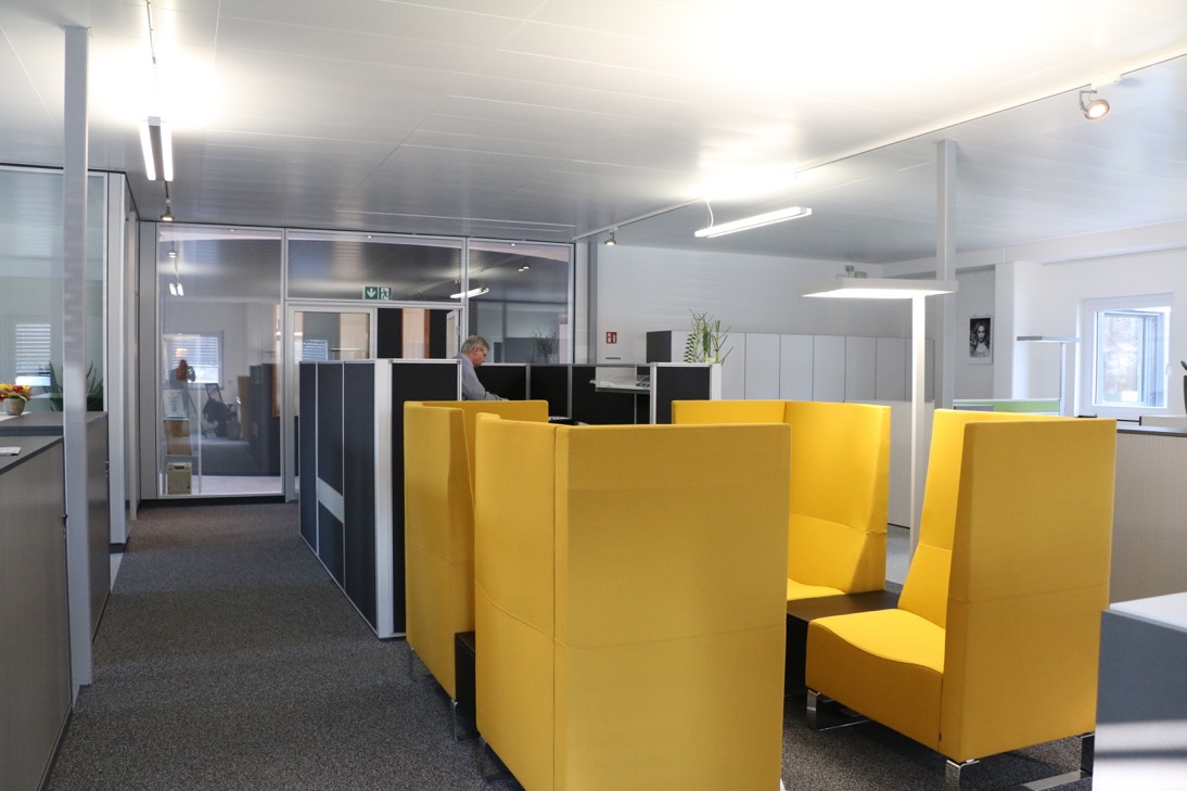 Sanierung Gewerbe Tübingen. Im Tübinger Ortsteil Weilheim wurde ein, um 1970 aus Betonfertigelementen gefertigter, bestehender Industriebau umfassend saniert und umgebaut. Das Gebäude besteht aus einer umgebauten Produktionshalle mit Lichtsheds, einer neuen LKW-Ladestation, einem neuen Eingangsbereich und einem unterkellerten Bürogebäude, das ebenfalls in enger und äußerst produktiver Zusammenarbeit mit dem Bauherren, kernsaniert und dann nach neuesten Büroplanungsmaßstäben ausgestattet wurde. Das Produktionsgebäude liegt am Ortseingang. Die gut einsehbare Ostfassade besteht aus Alukassetten, die in CI (Corporate Identity) Farben der Pumpenproduzierenden Firma Schmalenberger in hellgrün und magenta gestaltet sind. Der Umbau wurde von den bestehenden Mitarbeitern sehr gut angenommen und wird auch für zukünftige neue Mitarbeiter in weitestem Sinne „anziehend“ wirken.