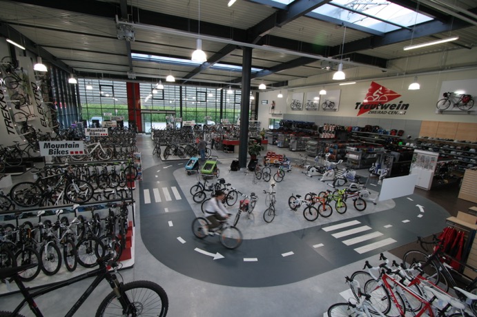 INNENAUSBAU ZWEIRAD-CENTER TRAUTWEIN Für das bereits im Jahre 2011 von unserem Büro mitkonzipierte Fachfahrradcenter wurden in den letzten Jahren diverse Innenausbauten umgesetzt. Ansprechende Architektur und hochwertiger Innenausbau in lichtdurchfluteter Stahl- und Glaskonstruktion schaffen eine neue „Fahrraderlebniswelt“ im „grünen“ Tübingen.